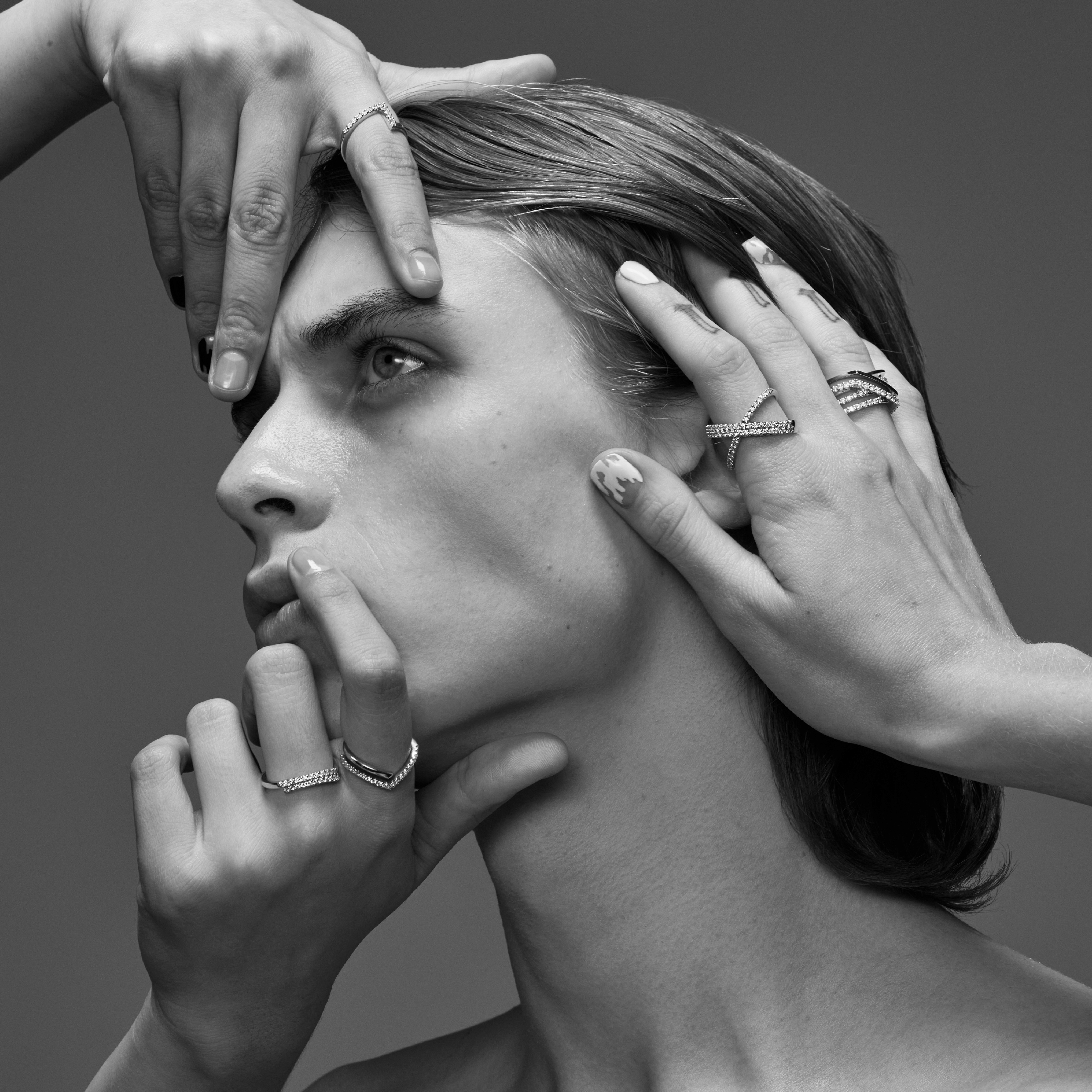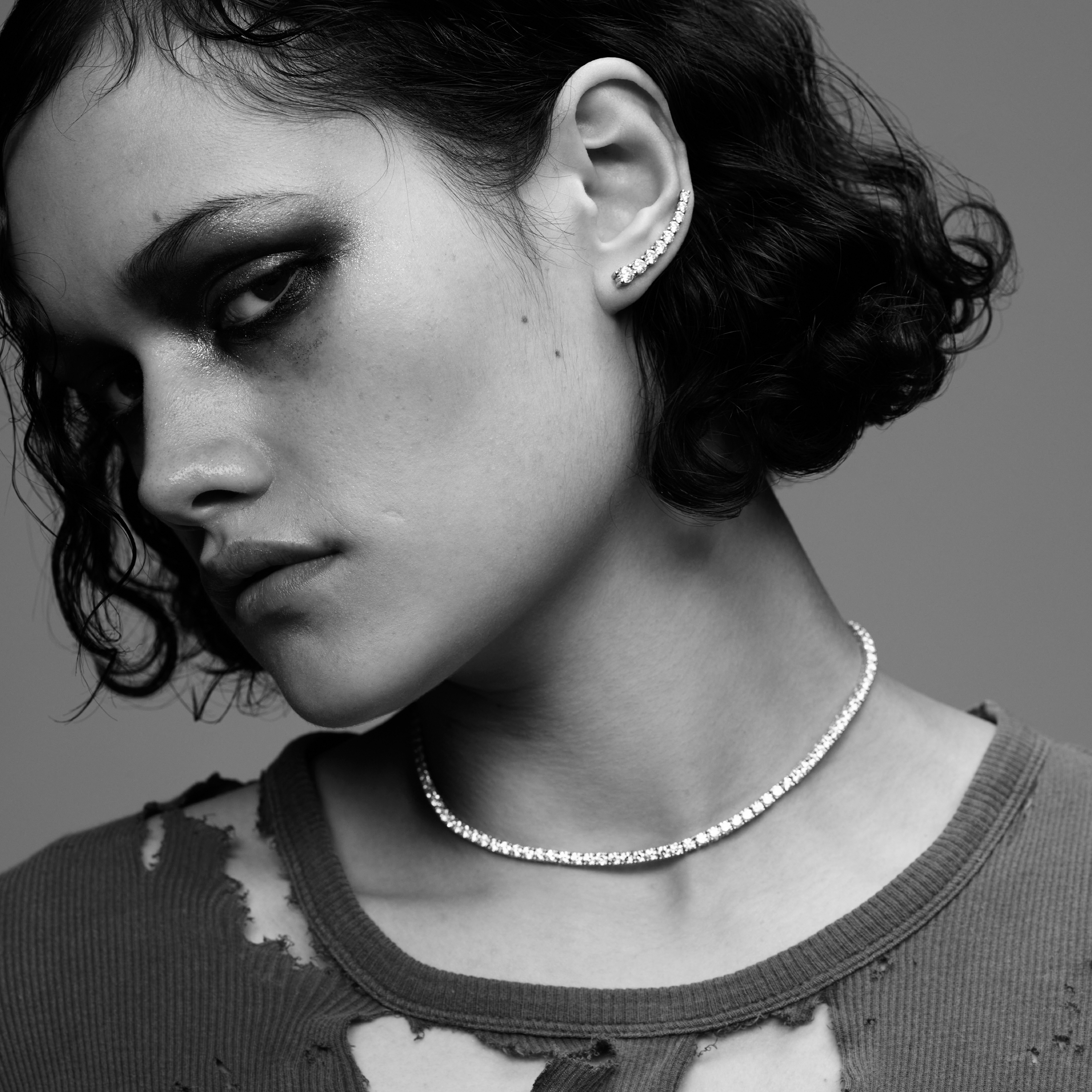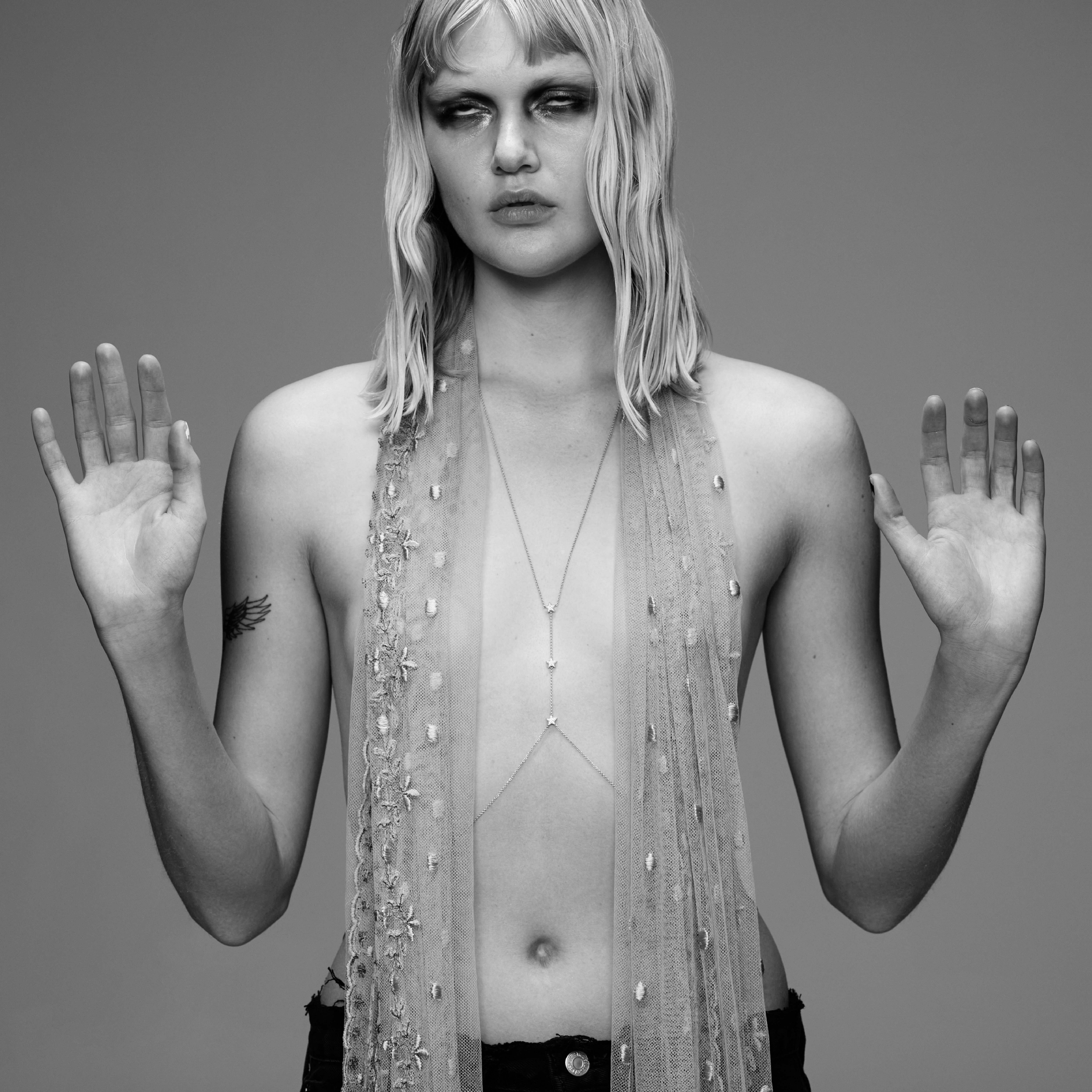 This campaign reimagines the brand's classic pieces and new releases through the lens of the founder’s alter ego. Interpreted through a refined approach and an unapologetically hard edge, the sensuality of night and unabashed personas are explored in tandem with decadent still lives that recall a mood of hedonistic living. The feeling of diamonds and gold against bare skin, wearing jewellery for one’s own pleasure, the sweat on the skin after dancing until morning, the scent of diamonds. A feeling of hurried foreplay: living to the point of exhaustion.