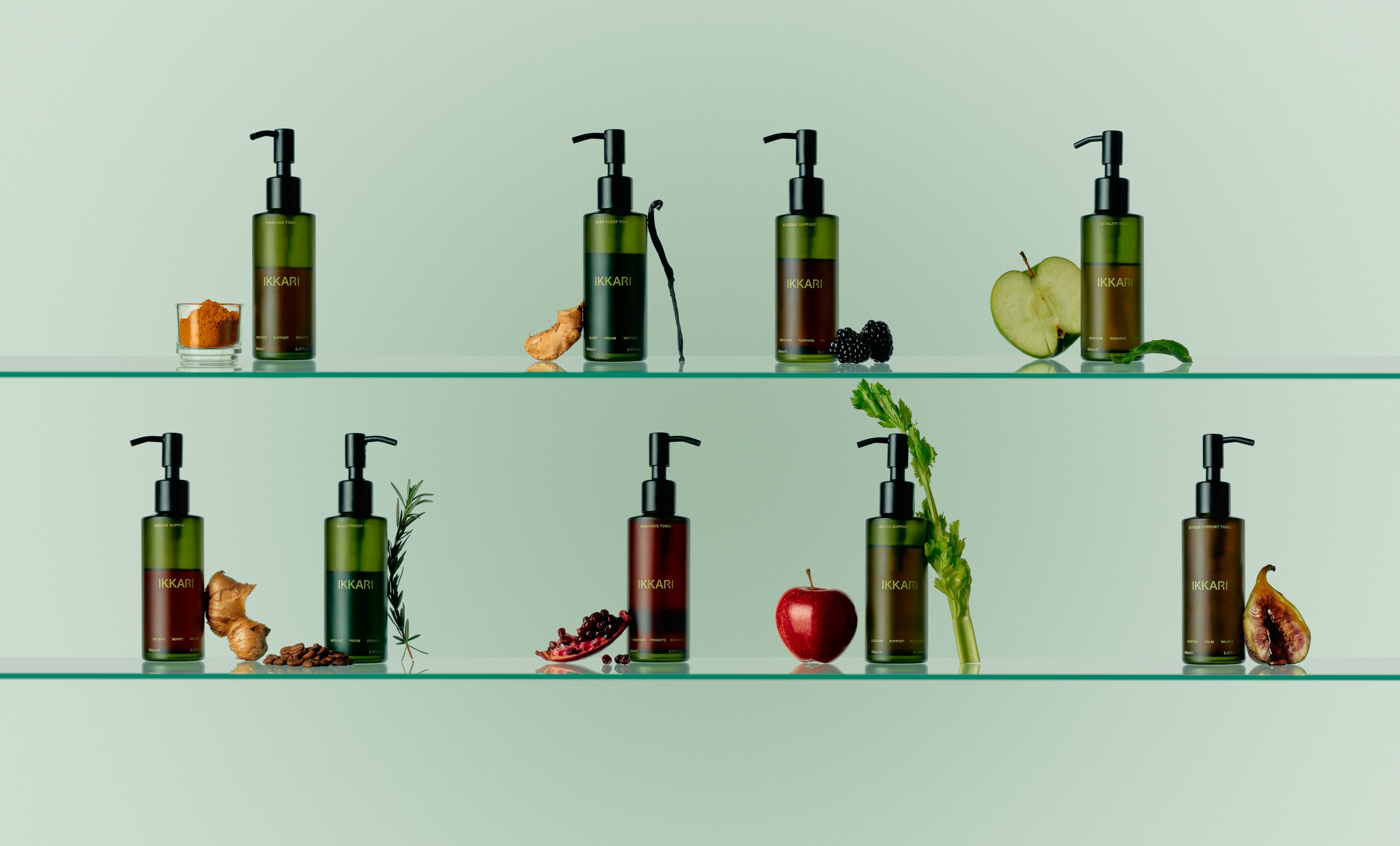 A series of still life images captured for lifestyle brand IKKARI during 2023 to support the campaign creative, showcasing a modern approach to beauty and wellness where science meets nature.