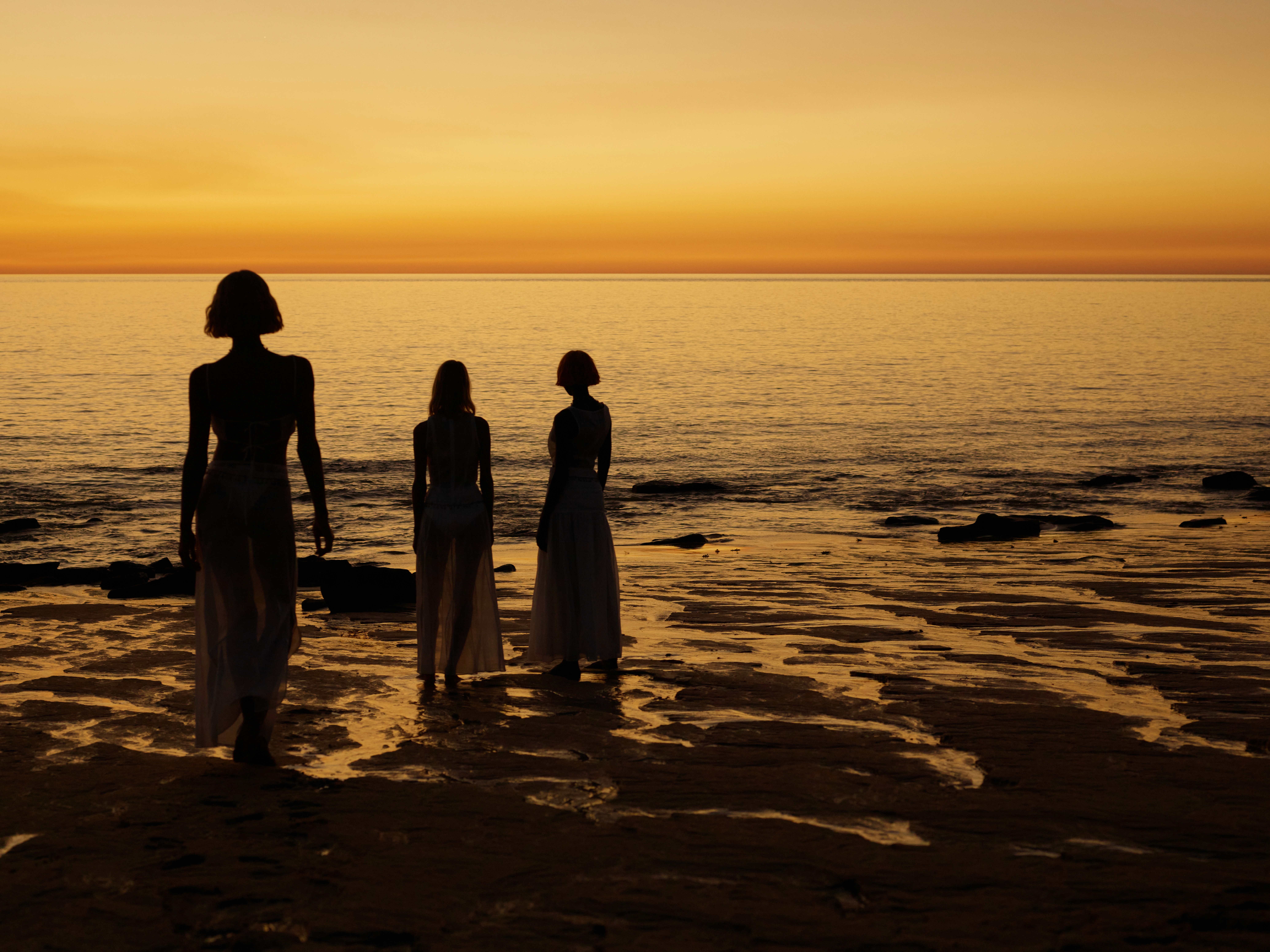 Bells chime in the distance, flags ripple in the gentle breeze. For Resort 2022, SIR reinterprets a recurring theme of female sisterhood through a fearless yet nostalgic lens. Captured on the tip of Western Australia, a land of mystical sunrises, crystal-clear waters, rocky cliff faces, and islands made of shells that disappear into the ocean every night, the campaign follows a story of starting over in simpler ways. Anchoring the season's storyline, the landscapes of Western Australia are held in balance by their traditional Aboriginal custodians and elders, and are a place of special significance for SIR founders Nikki Campbell and Sophie Coote.