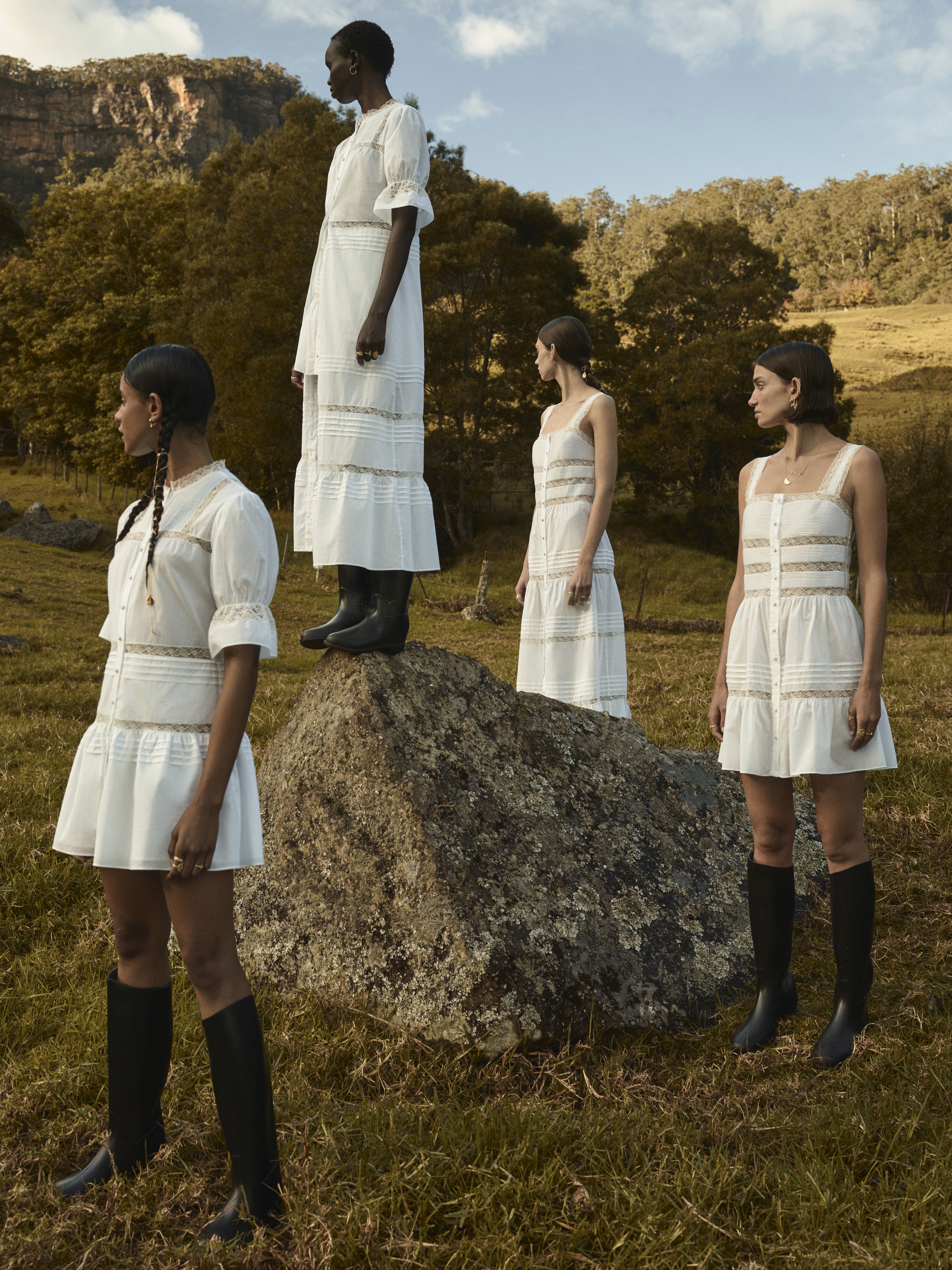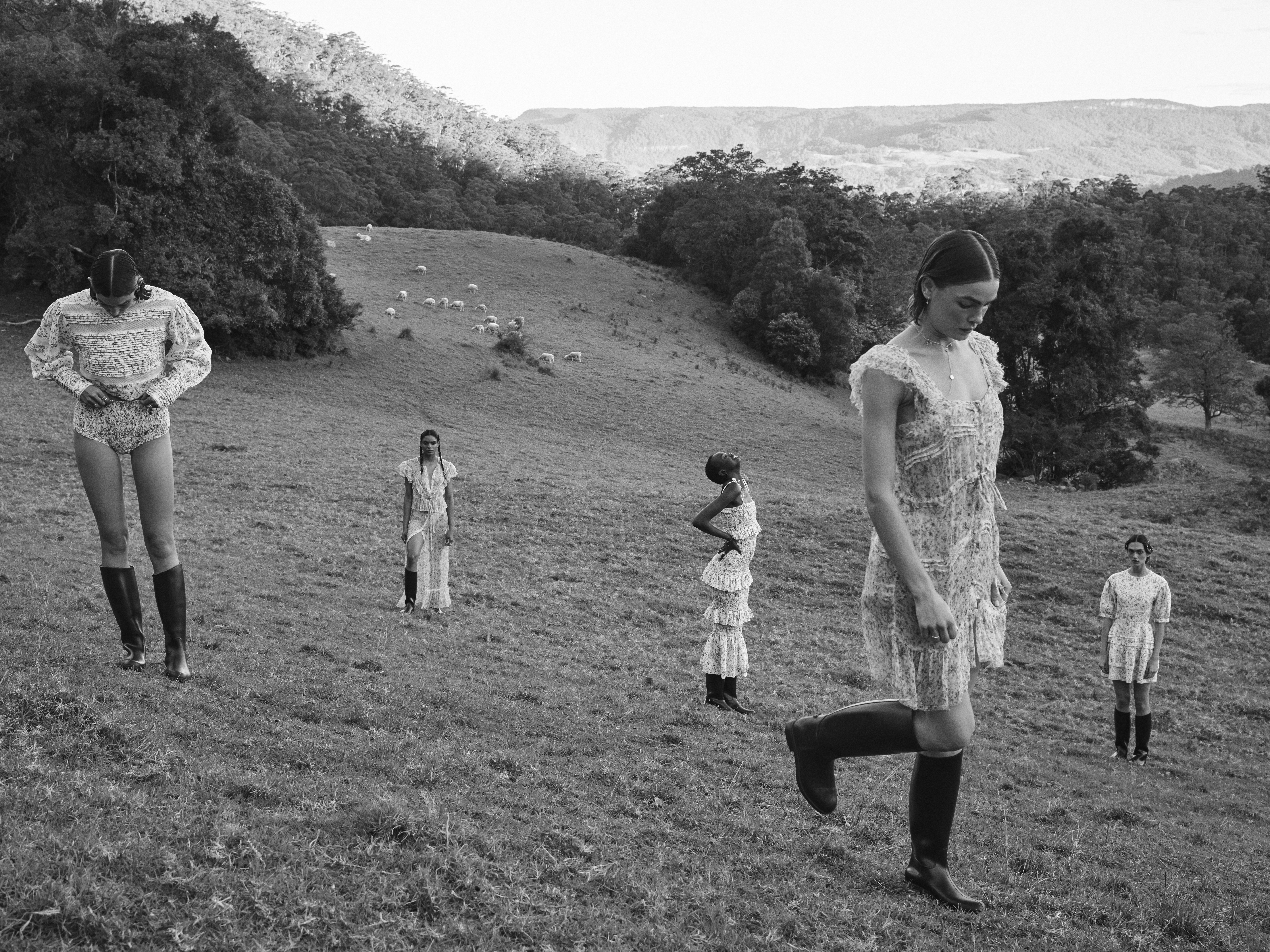 Throughout the next years of collaboration, the SIR sisterhood became intertwined with ever more otherworldly locations. From this first campaign, captured in Kangaroo Valley to Kiama, Era Beach, Narooma and WA, the SIR community travelled through some of Australia’s most iconic and lesser-known destinations. As the brand evolved and adapted, so did the creative language — shedding some of the romantic innocence of its earlier days in favour of a sharper edge, a sexier bite, modern lines, and global inspirations.
